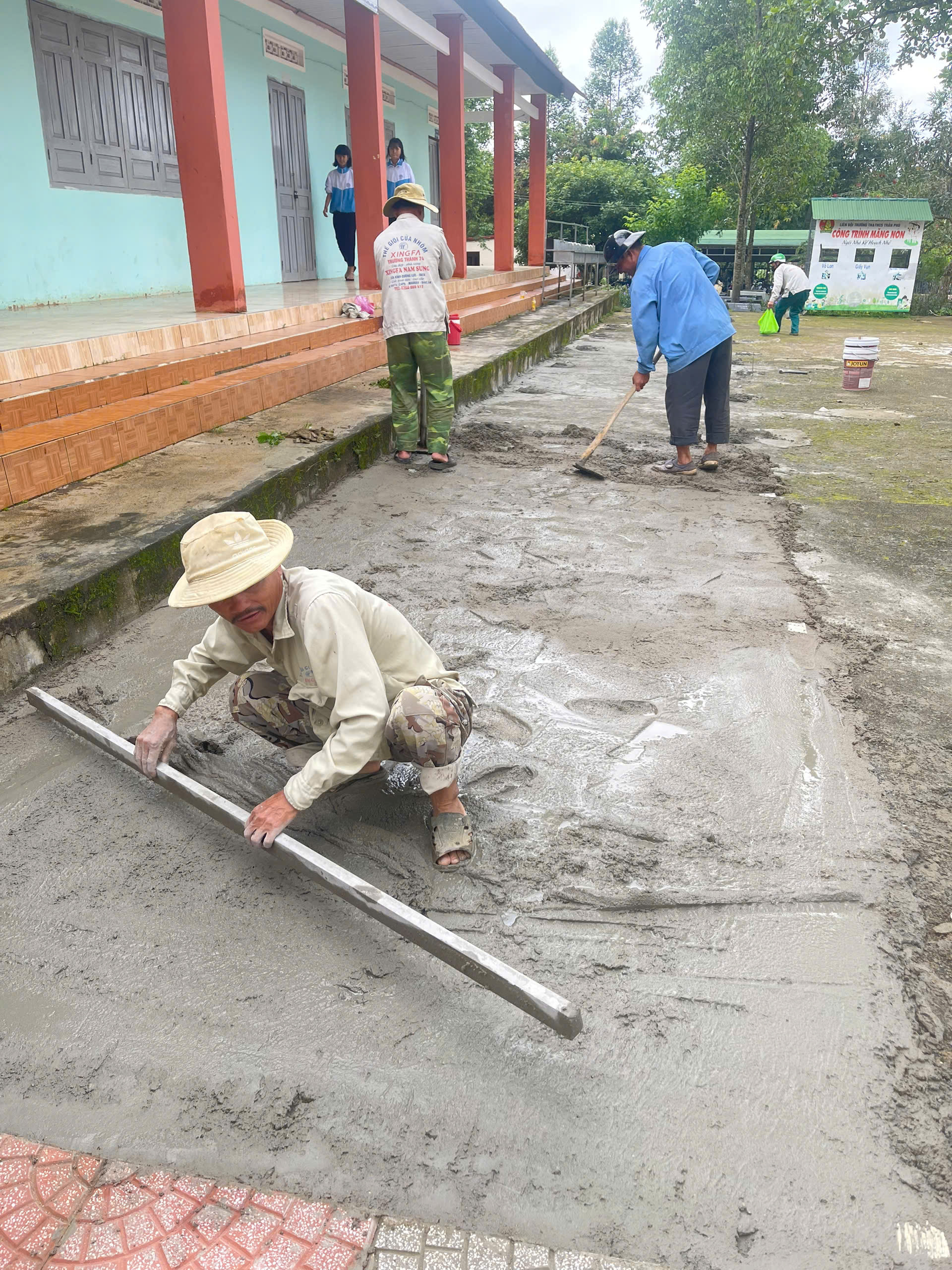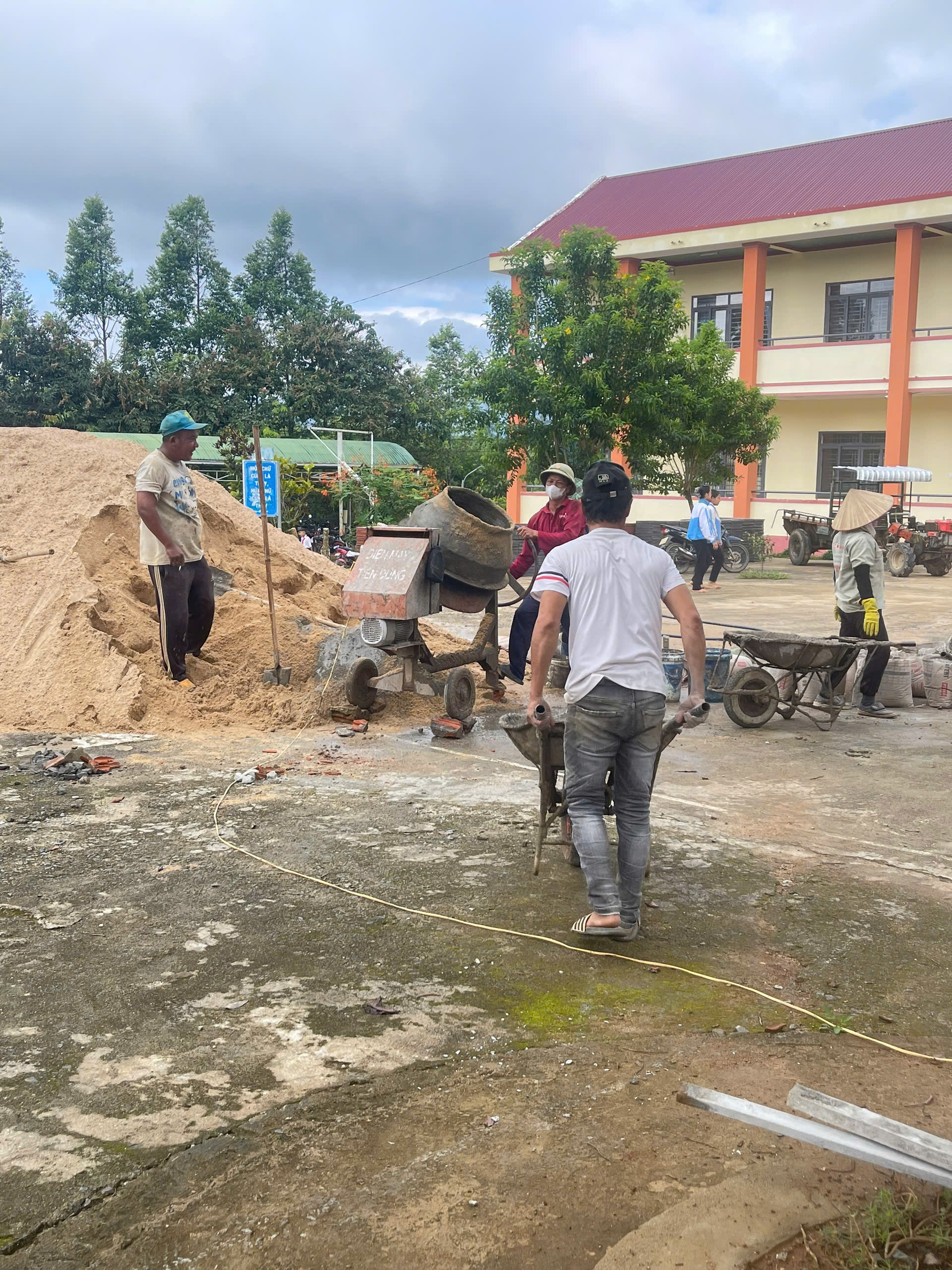 Tổng nguồn huy động được đa dạng: người hỗ trợ tiền mua gạch; người hỗ trợ cát, xi măng; người đóng góp xe vận chuyển, máy móc; người cho mượn nhân lực thi công. Không ít thầy cô vừa đứng lớp, vừa tranh thủ thời gian rảnh cuốc đất, san nền, vận chuyển vật liệu. Nhiều phụ huynh sau buổi làm nương, làm rẫy vẫn đến trường hỗ trợ thợ lát gạch, người xúc cát, người xếp gạch, người dọn dẹp.