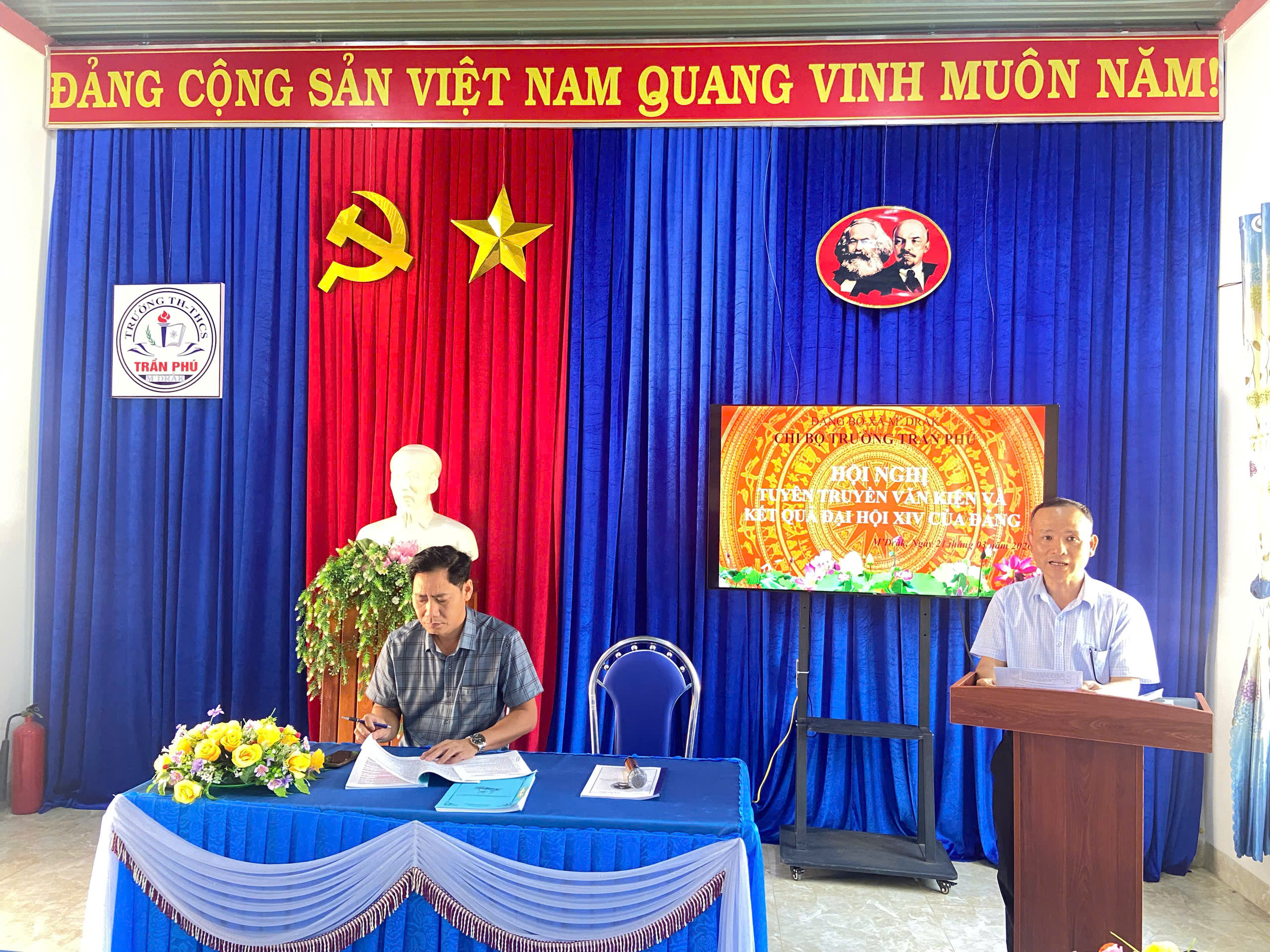 CHI BỘ TRƯỜNG TH&THCS TRẦN PHÚ XÃ M’ĐRĂK TỔ CHỨC HỘI NGHỊ TUYÊN TRUYỀN VĂN KIỆN VÀ KẾT QUẢ ĐẠI HỘI LẦN THỨ XIV CỦA ĐẢNG