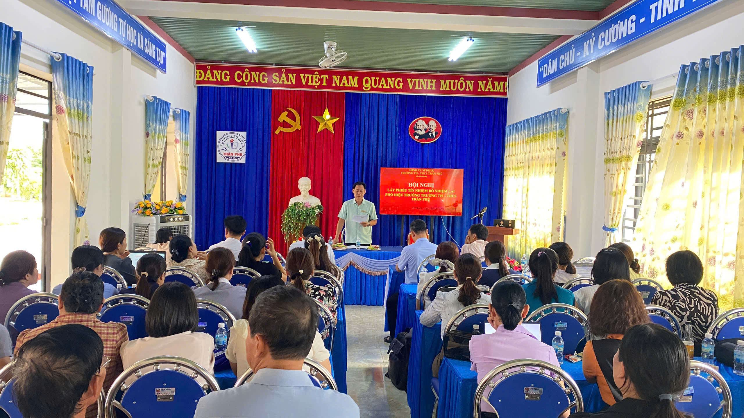 Hội nghị lấy phiếu tín nhiệm bổ nhiệm lại chức danh Phó Hiệu trưởng Trường Tiểu học và THCS Trần Phú diễn ra trong không khí dân chủ, đoàn kết và trách nhiệm. Sự kiện này không chỉ khẳng định uy tín, năng lực, sự tận tâm của đồng chí Đồng Quốc Dân và đồng chí Lương Bá Từ, mà còn là dấu mốc quan trọng, tạo tiền đề để nhà trường tiếp tục vững bước trong sự nghiệp trồng người.