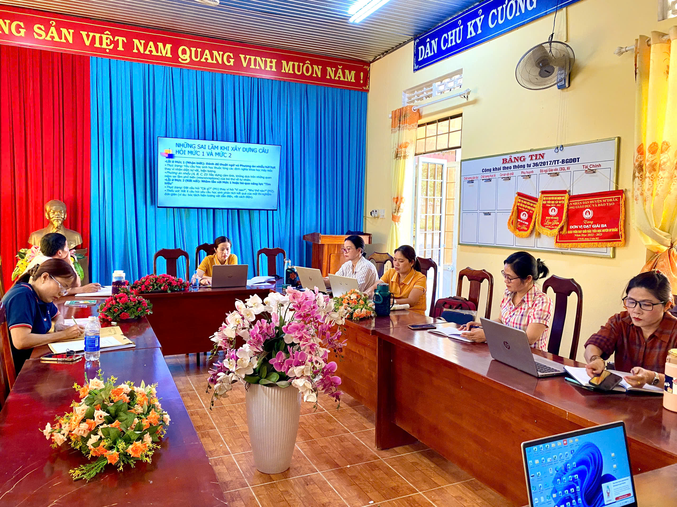 Đặc biệt, thành công của buổi tập huấn thể hiện rõ vai trò chỉ đạo kịp thời, sát sao của Ban Giám hiệu nhà trường. Việc tổ chức hội nghị đúng thời điểm đã đáp ứng nhu cầu cấp thiết trong công tác chuyên môn, giúp giáo viên tự tin, chủ động hơn trong việc xây dựng đề kiểm tra định kỳ theo đúng quy định.