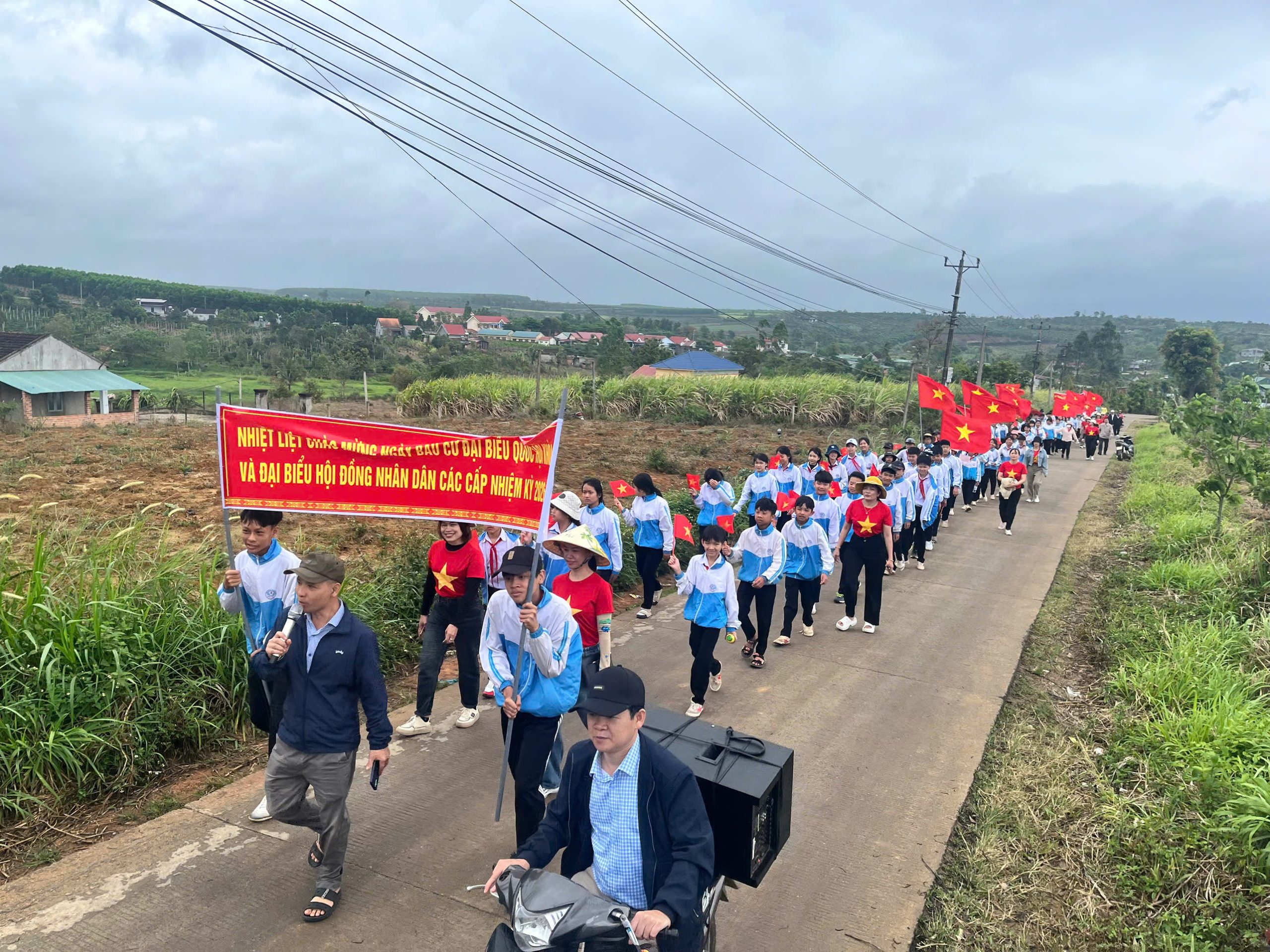 Thực hiện kế hoạch tuyên truyền của địa phương và của ngành giáo dục, Ban Giám hiệu nhà trường đã xây dựng kế hoạch tổ chức hoạt động tuyên truyền cổ động trong học sinh với nhiều nội dung phong phú, thiết thực. Trong đó, điểm nhấn là hoạt động cho học sinh tham gia diễu hành tuyên truyền cổ động trên các tuyến đường chính của xã M’Đrăk nhằm lan tỏa thông điệp về ngày bầu cử, góp phần tạo khí thế sôi nổi trong toàn xã hội hướng về sự kiện trọng đại này.